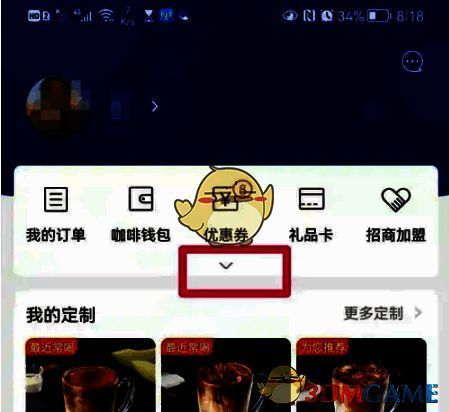 1、打开手机瑞幸咖啡app,点击右下角“我的”,进入新页面,点击“优惠券”下面的小三角图标。