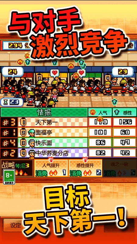 在大赛中和竞争对手展开激战,争抢天下第一的拉面店吧!