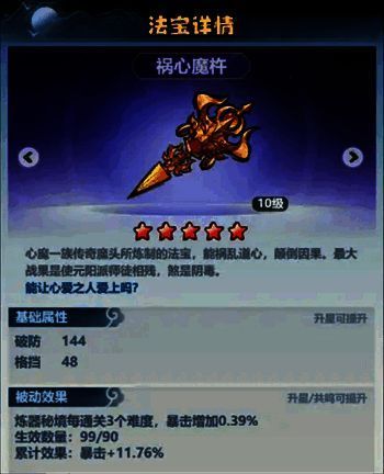 获取途径:龙渊泽的法宝探索有概率探索到成品和碎片