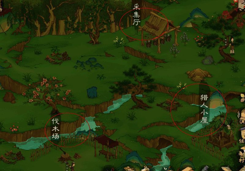 森林解锁后有三个固定采集点,也是前期重要资源,别忘了每次刷新的时候去采集。
