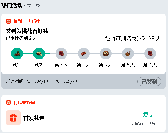 游戏礼包码集合:TYJ2ZSSX,TYJ26666,TYJ28888,以及tap平台自带的签到和首发礼包,如下图所示