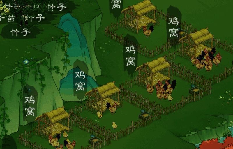 关于鸡窝:可以建造五个鸡窝,鸡苗来源于森林地图-猎人小窝以及鸡蛋孵化,孵化鸡蛋需要当前鸡窝有成年鸡,所以不要一口气把成年不下蛋的鸡都变成鸡肉谢谢,每个鸡窝至少留一个成年鸡孵化鸡蛋,鸡蛋只可以在春夏两季孵化,鸡饲料是杂草,五个养鸡场,合计100个养鸡位置,全肝满情况下对杂草需求量挺大,所以不要忘了平时多采集杂草。