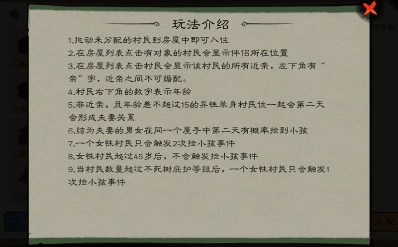 关于村民结婚和生娃的规则:如图五所示,总结下来就是,自动婚配一开,简单省事,感兴趣体验当月老+村长的玩家可以仔细阅读规则,然后给村里单身村民婚配,生娃。
