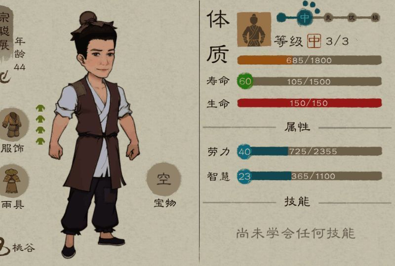 衣食住行:记得给每个村民准备一套四季衣服和雨具,以及好的住所,这样健康下降慢,吃的药就少了,吃的药少了,活的就久了,活的久了,压榨的价值就多了,活的太短,刚把劳动力养起来就嘎了,刚把技能书学了就嘎了,岂不血亏?所以不要在衣食住行上卡脖子。