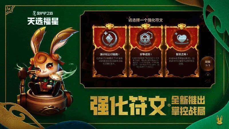 此外,【天选福星】限时玩法不仅具有独立的排位系统,还在现有的经典强化符文下,新增了50多种特别设计的强化符文。这些符文将与强力的【天选之人】以及诸多趣味羁绊碰撞出更多火花,助你制定出更有趣的运营策略,一路连胜冲击更高段位,领取限时玩法的独占奖励。