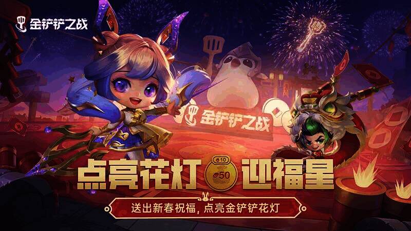 1月12日-1月20日,金铲铲之战携手深圳世界之窗举办新春游园庆典活动,在微博、抖音、小红书、B站、快手平台上搜索#点亮花灯迎福星#话题,参与互动、讨论、投稿,送出你的新年祝福,金铲铲之战将汇聚弈士们的每一D祝福,共同点亮金铲铲花灯,迎接新年好运。