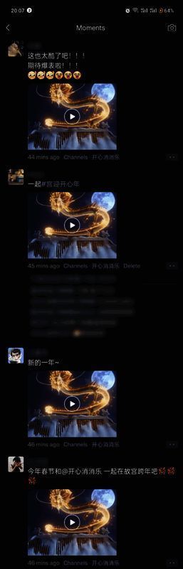 被《开心消消乐》的春节活动吸引住,始于它在朋友圈里疯传的CG短片。这只短片主要讲述了在知名网红宫猫帕帕的引领下,《开心消消乐》游戏里的7只小动物通过完成脊兽归位、写福字以及点亮宫灯的任务,收集宝珠唤醒神龙的故事。