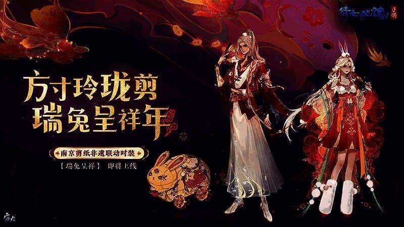 全新剪纸主题时装【瑞兔呈祥】即将上线!倩女幽魂手游携手国家级非遗项目【南京剪纸】代表性传承人张方林老师,将好运倾注丝线,剪裁出这套颇具年味又寓意吉祥的【瑞兔呈祥】时装。兔子与窗花元素的搭配相得益彰,灵动活泼同时纳祥瑞于一身。逢此佳期寄予美好祝愿,期盼与你一同在三界共赏漫天烟火!