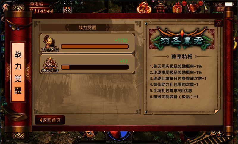 活动期间,玩家在活动界面中点击‘觉醒’按钮开始觉醒流程,系统按照该角色相关信息进行评分,最后根据评分结果对该角色进行价值划分。符合条件的经典区玩家再完成战力觉醒后,可参与等级直升和养成线直升活动,玩家通过购买限时礼包,快速提升等级和养成线。