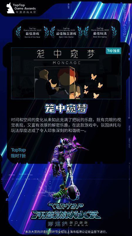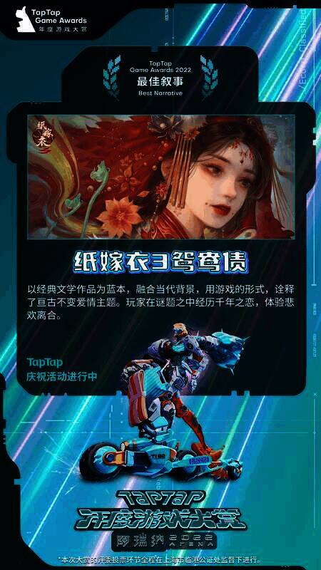 每一届TapTap年度游戏大赏,都不是一次转瞬即逝的颁奖,也不止是一次食之无味的年终总结,共聚在全新的阿瑞纳世界,游戏和玩家在此彼此见证,寻找游戏的乐趣,探索游戏的可能,“记录游戏世界的精彩”为的是沉淀一年来玩家和从业者共同孕育的经典。前往TapTap,搜索“大赏”,参与活动即可赢取PS5、手机等大礼哦。