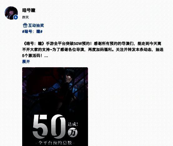 全平台预约突破50W,《暗号:瞳》未来可期