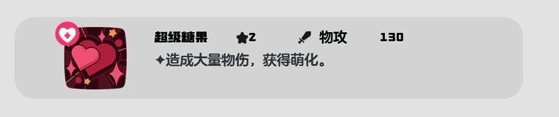 超级糖果属于可以给对手造成大量物理伤害的技能,技能伤害为130点,而且该技能使用后帽兜娃娃还能获得萌化的效果。
