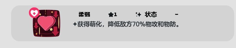 柔弱能让帽兜娃娃直接获得萌化效果,该效果能直接把敌人的物理攻击和物理防御给降低70%。