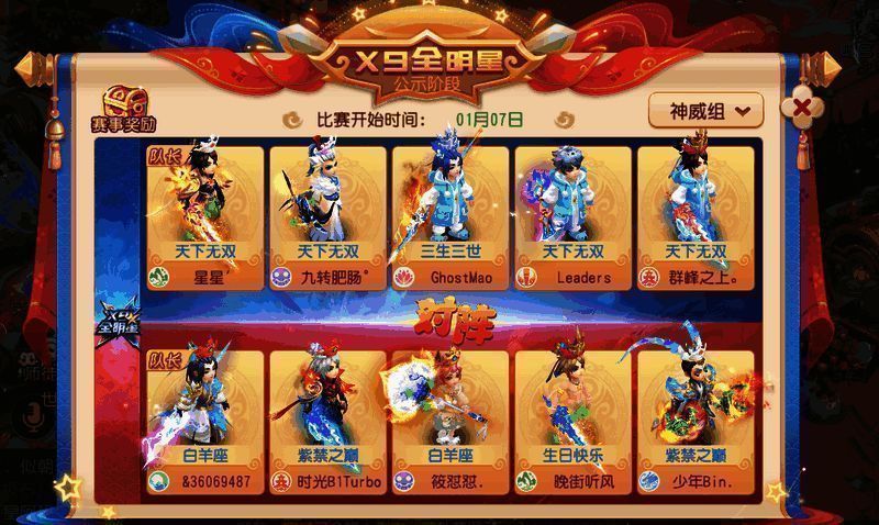 根据全服票选结果,《梦幻西游》手游2022届X9全明星赛各组别的参赛队伍已产生并完成公示,正式比赛将于1月7日晚19:30开赛!