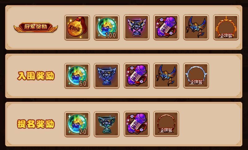 所有成功入围或获得提名的战队,将根据实际情况获得数量不等的开明兽灵珠、特殊称谓、东煌战盔头饰以及赛事专属角色展示框。而最终成功获得X9全明星赛冠军的战队更将赢得定制实物金牌、开明兽灵珠、年度最佳阵容称号&称谓、冠军专属头像展示框、东煌战盔头饰等大奖!