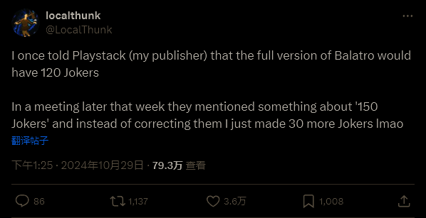 在游戏的宣发中,发行商也会犯一些笔误,特别是那些比较小的发行公司。《小丑牌》的开发者 LocalThunk 就在社交媒体上透露了一条相关的趣闻:开发者在为这款热门卡牌肉鸽游戏准备宣发工作时也犯了一个小错误,但他并没有去纠正这个错误。