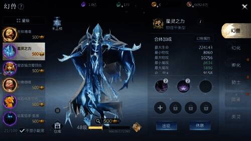 每个角色可以携带三种幻兽,每个幻兽提升一星增加一点战力,登上排行榜有额外的战力加成。幻兽需要通过幻化提升星级。每次幻兽都会消耗一只同类型的幻兽或一只奇异兽。