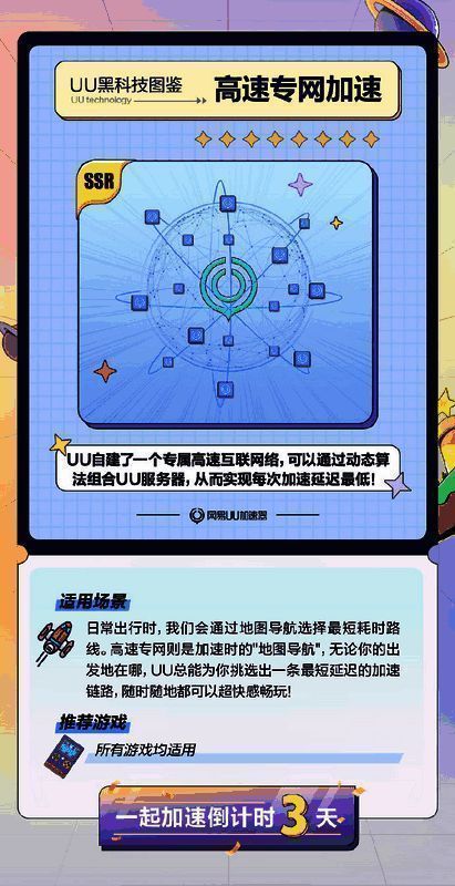 网易UU加速器11周年庆即将于1月6日正式开启!在过去的一年里,UU加速器一直致力于开发最前沿的加速技术,力图为玩家带来最优质的加速服务。其独有的四大“黑科技”,为玩家提供了高速稳定的加速线路。接下来就跟小编一起了解一下UU加速器都有哪些“黑科技”,以及周年庆将会有哪些好礼在等待各位小伙伴吧~