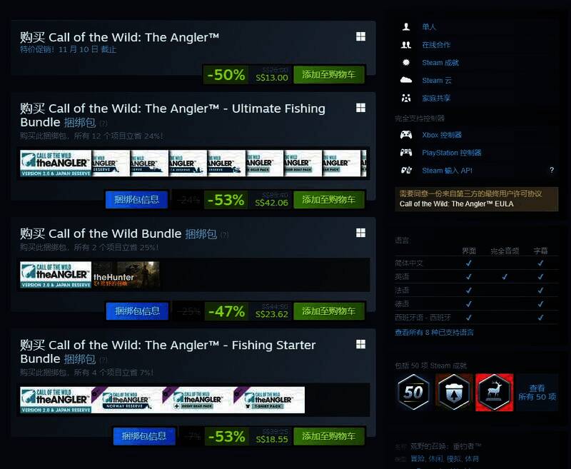 《荒野的召唤:垂钓者》“日本渔业保护区”已支持简体中文界面和字幕,Steam平台国区现价42元暂无折扣,不过《荒野的召唤:垂钓者》的本体和DLC正在限时特惠中。