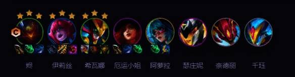 烬、伊莉丝、希瓦娜、厄运小姐、阿萝拉、瑟庄妮、奈德丽、千珏