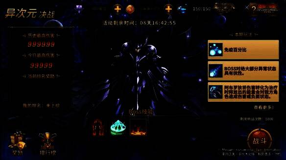 挑战限时专属BOSS,根据最高伤害进行排名。可获得每日奖励和排名奖励。
