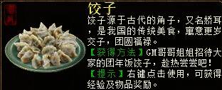 新的一年不吃饱,如何在这江湖闯荡。互动完毕后,GM将邀请各位一起进食团年饭,点击桌子将会获得热腾腾的饺子哦,每个饺子里都是GM为大家送出的祝福,尝尝你的饺子里有什么馅儿吧!可要小心别被仙器噎住哦~