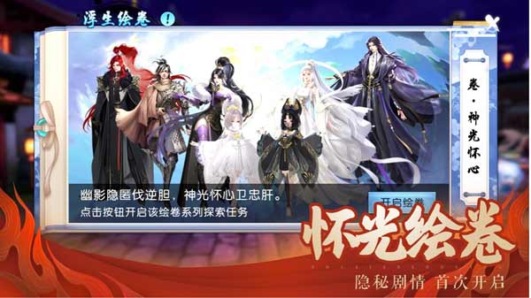 作为刚上线不久的新职业怀光,其绘卷也将在全新版本中开启,玩家可使用道具激活绘卷,探索羁绊NPC姬熙、霁、姬昱等人的角色传记,并重现怀光一职背后的隐秘故事。在绘卷激活后,玩家可以随时欣赏绘卷,当绘卷被全部点亮后,还可领取整套绘卷奖励,并激活绘卷主题曲。