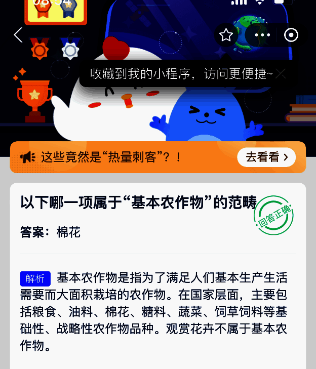 以下哪一项属于“基本农作物”的范畴?这是支付宝蚂蚁庄园小鸡答题4月21日题目,支付宝小鸡答题是大家非常喜欢的活动,大家获取饲料就可以喂养小鸡领取更多的蛋去帮助更多的人了!今日正确答案是【《棉花》】,在国家层面,基本农作物主要包括粮食、油料、棉花、糖料、蔬菜、饲草饲料等基础性、战略性农作物品种。