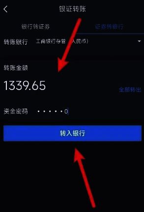 打开广发易淘金APP并登录,进入“我的”页面后,点击“现金”进入资金管理页面,然后选择“证券转银行”选项,输入想要转出的金额并输入密码,最后点击“转入银行”或“直接转出”按钮即可完成提现操作,方便用户随时将证券账户中的可用资金转回银行卡。