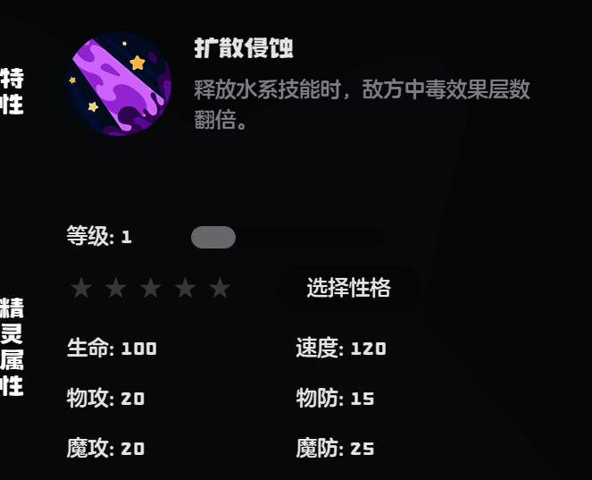 琉璃水母是一种即带头水系属性又带有毒系属性的精灵,该精灵的种族值为624,它的特性为扩散侵蚀,意思就是在使用水系技能的时候,敌方的中毒效果会直接翻倍呈现。