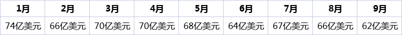 2022年的全球手游市场在经历了1月的收入高峰之后,开始呈现出阶梯式下降,在22年1-9月份,全球手游玩家在App Store和Google Play消费金额分别为(如下表)