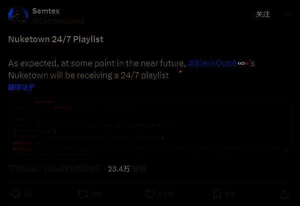 在每一款《使命召唤》中,每一代作品都会有一个全天候循环(24/7)小地图的模式。在一作品中这张地图是“混战码头”,其他作品中则是“核弹小镇”。11月 1日,最近刚刚推出的《使命召唤:黑色行动6》将获得经典小地图“核弹小镇”,而根据数据挖掘确认,全天候循环模式也将随其二至。