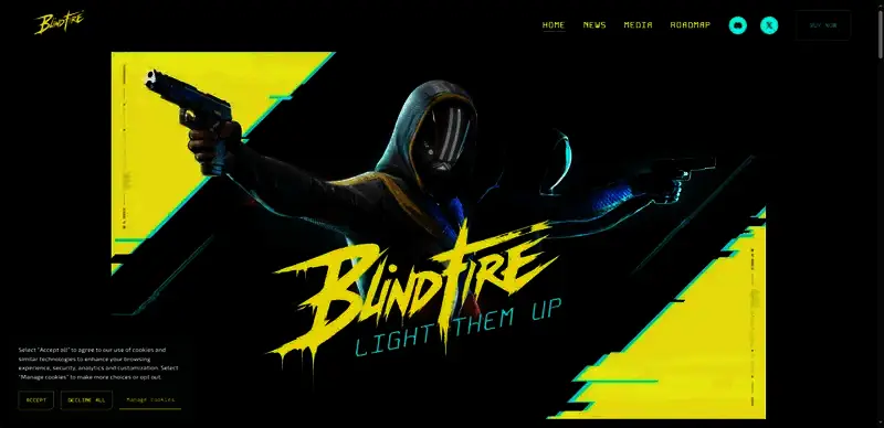 《Blindfire》是一款在线多人第一人称射击游戏,而这款游戏的官网地址就是一个官网页面,另外Steam平台的购买页面也算官网,进入到这个游戏的购买页面基本上就能知道所有这款游戏的信息。