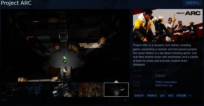 今日(10月29日),吃鸡厂商新作《ProjectARC》Steam页面上线,发售日待定,暂不支持中文,感兴趣的玩家可以点击此处进入商店页面。
