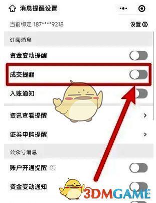4、进入消息提醒设置页面,在页面下方将【成交提醒】开关关闭即可。