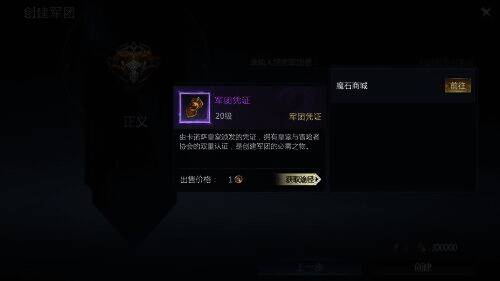 当然在创建军团之前,要确保自己口袋里有「军团凭证」,仅需少量货币即可从商城中购得,记得随时去看看。