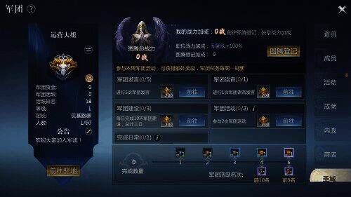 作为军团长,在初期肯定要操心军团的大小事务。进入军团资讯界面,就可以看到每周需要完成的军团任务,以及现在军团运营状况如何。