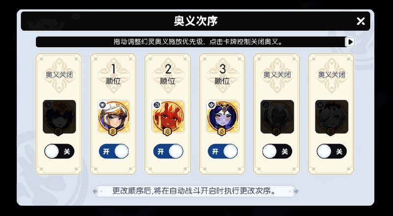 进入战斗前,长按角色头像拖拽调整奥义释放顺序,优先关键技能;