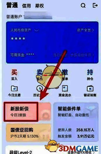 2、在交易页面中点击【新股新债】进入
