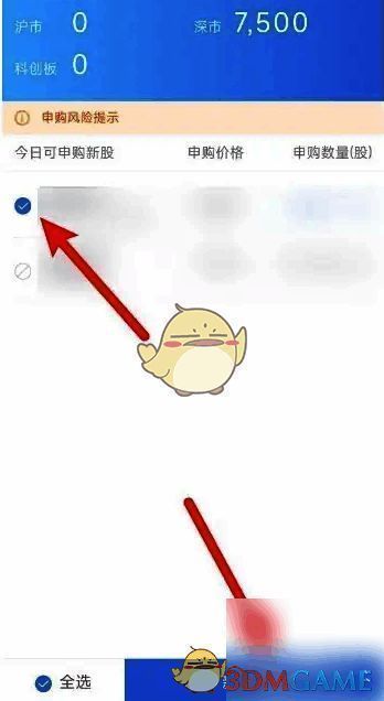 4、在普通账户申购页面,勾选要申购的新股,点击底部【新股新购】
