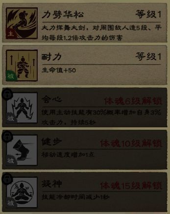 体魄达到对应等级可以解锁相应技能,在不死树达到一定等级后,可以进行技能升级。