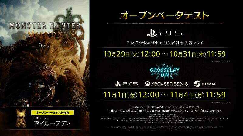 卡普空旗下经典系列最新作《怪物猎人:荒野》PS5公测即将于11月1日至11月4日举行,10月28日今天官方预载开启,而且PS Plus玩家明天就可以提前开测,感兴趣的玩家可以关注下。