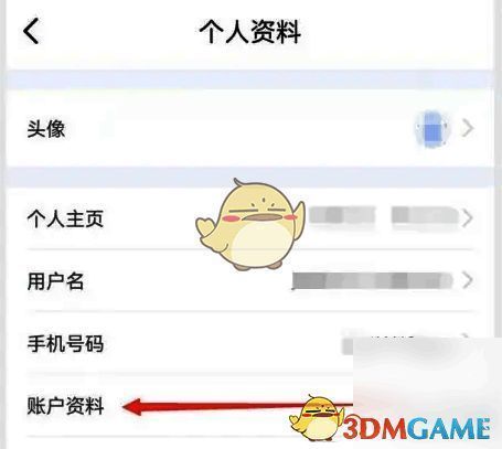 3、进入“个人资料”页面后,点击“账户资料”进入后即可查看自己的开户账户相关资料,如图所示。