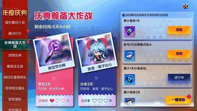 年度庆典,感恩同行。完成指定任务,即领专属限定荧光棒,全新栗子酱表情等奖励!