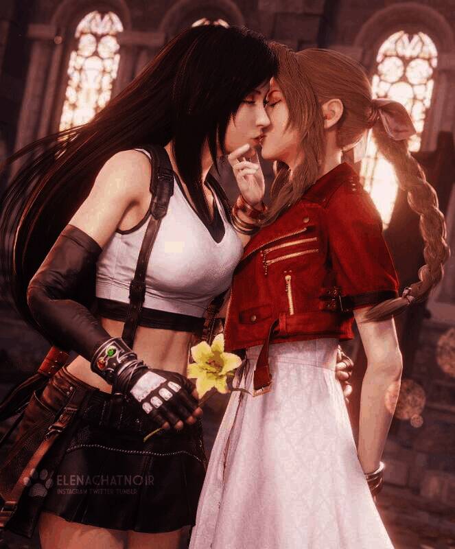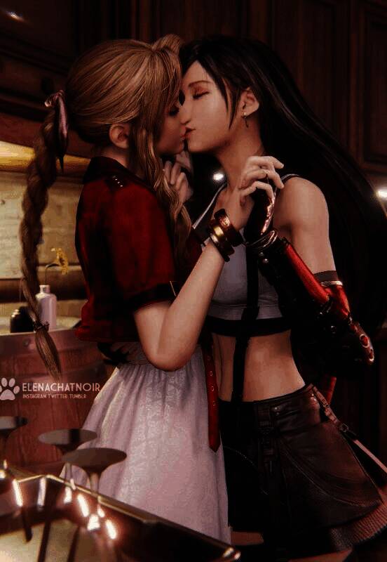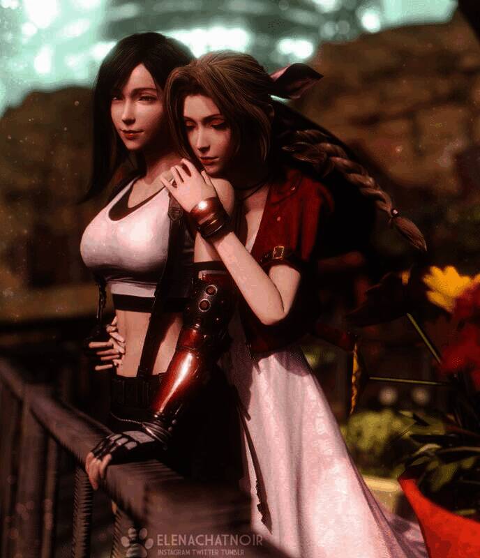 近日游戏博主ElenaChatNoir分享了《最终幻想7》蒂法和爱丽丝的全新3D作品,就见这两位亲密秀恩爱,甚至亲上了让人大呼过瘾。一起欣赏下美图吧!
