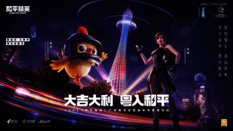 此外,《和平精英》也与城市复苏后的首个文旅盛典,世界三大灯光节之一的广州国际灯光节强强联手,打造2022广州国际灯光节数字分会场!活动期间,在广州塔顶及各大观景台,均可与队友一同云赏主题为“大吉大利,粤入和平”的游戏数字灯光跨年特别表演。2022广州国际灯光节也特别邀请了《和平精英》光子鸡作为云看灯光节联合吉祥物。12月27日晚,不止在游戏数字分会场中,光子鸡小队也将在灯光节虚拟主会场及广州城市中轴线,带领大家一起迎光!