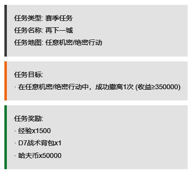 在任意机密/绝密行动中,成功撤离1次 (收益≥350000)