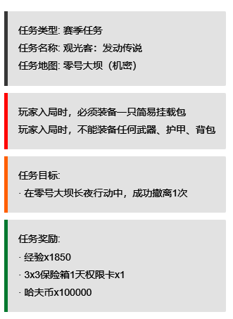 3、零号大坝装备MP5【裸枪】击杀5名AI+P90【半改】击杀1名玩家同时提交任务物品【1-2局】