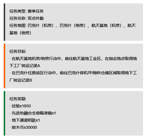 在航天基地机密/绝密行动中,前往航天基地工业区,在指定地点取得地下工厂转运记录A。