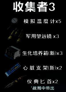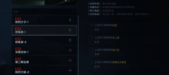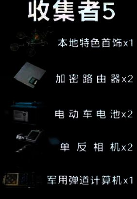 6、【解锁收集类任务:需要搜集5个紫色电子类、工具类、医疗类、军事情报类收集品,做其他任务时顺带搜索即可】